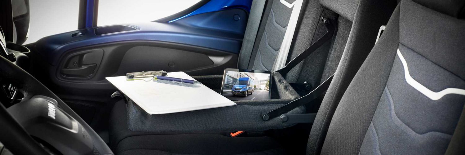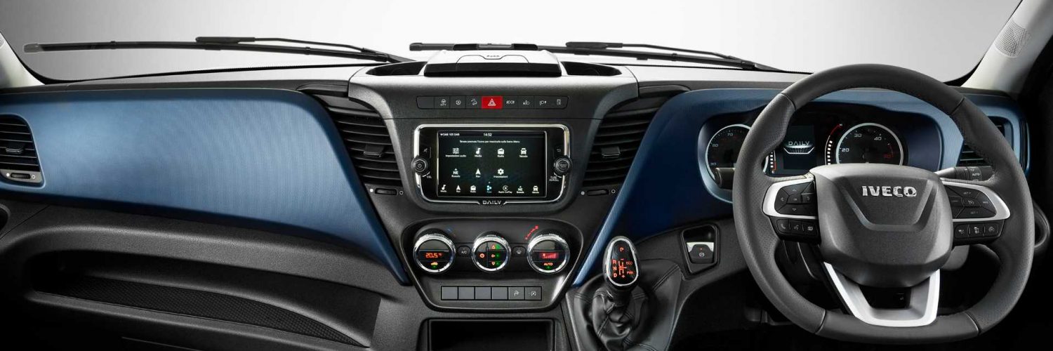 Come anticipato, l’autista può usufruire di un aumento di confort che lascia trasparire una sensibilità nuova nei confronti dell’esperienza lavorativa. L’intero sistema di sterzo è stato riprogettato: il volante è regolabile in altezza e profondità. Si tratta di un volante multifunzione di dimensioni ridotte, che mette a disposizione un’ampia serie di comandi e lascia maggiore spazio libero per le gambe. Daily integra anche un nuovo servosterzo elettrico che riduce le vibrazioni. Il nuovo cluster presenta un display TFT a colori ad alta risoluzione unito al nuovo sistema di infotainment Hi-Connect con funzione di riconoscimento vocale consente che offre la connettività Apple CarPlay e Android Auto.